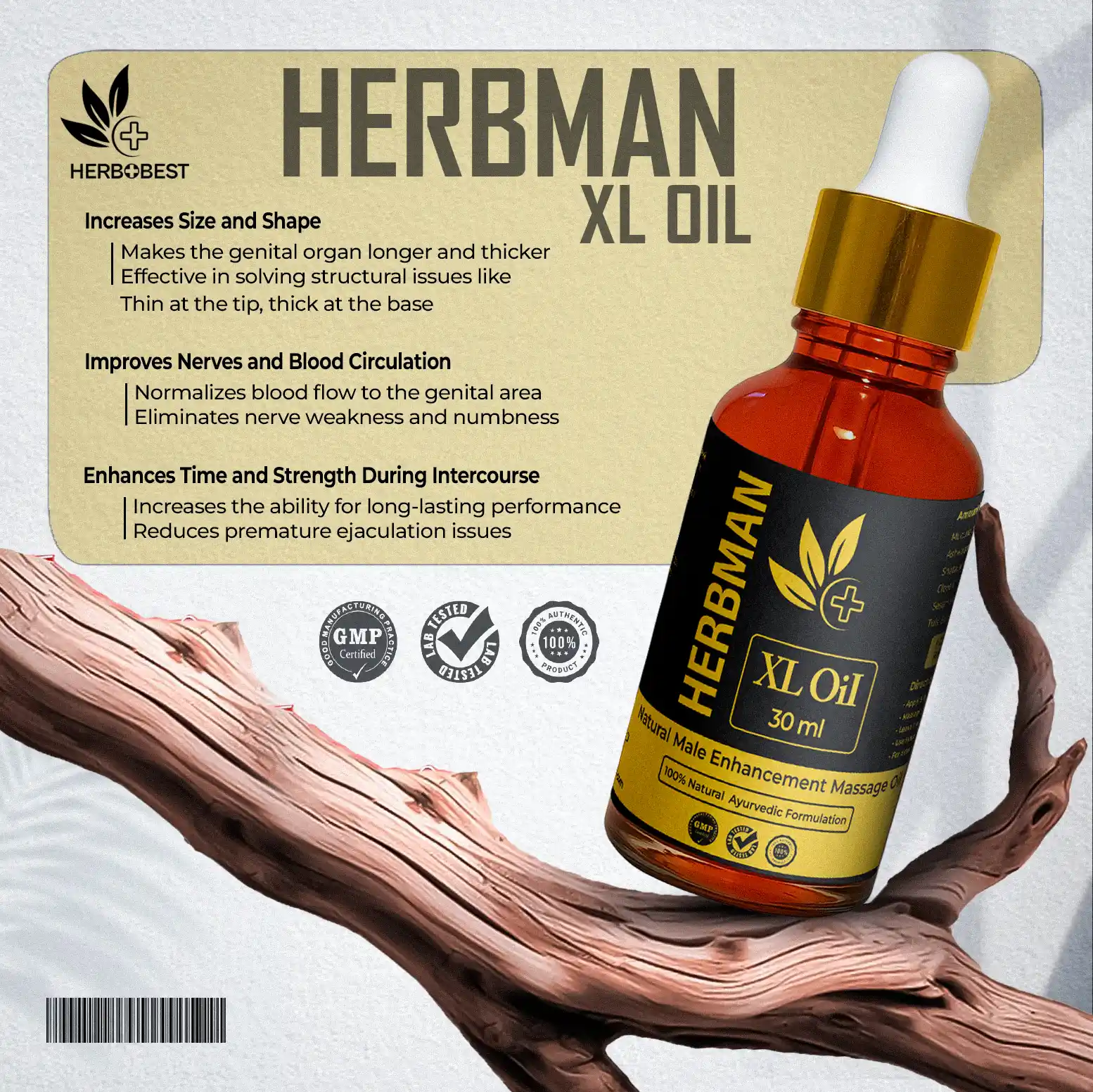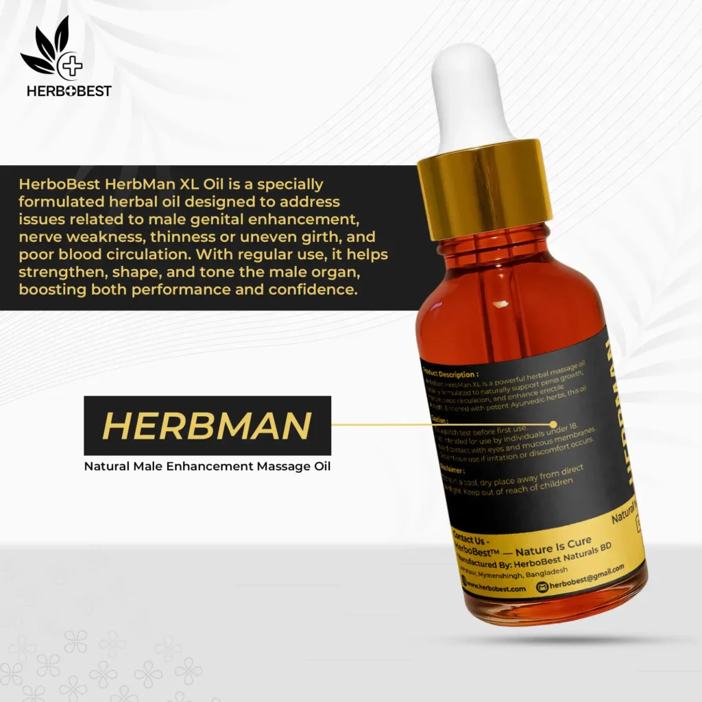 HerboBest HerbMan XL Oil হলো ১০০% ভেষজ উপাদানে তৈরি বিশেষ তেল, যা নিয়মিত ব্যবহারে গোপন অঙ্গকে করে শক্ত, লম্বা ও সুগঠিত।